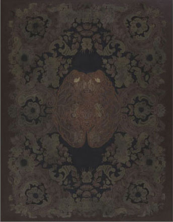 Oil, lacquer on decorative fabric, 186 x 141 cm